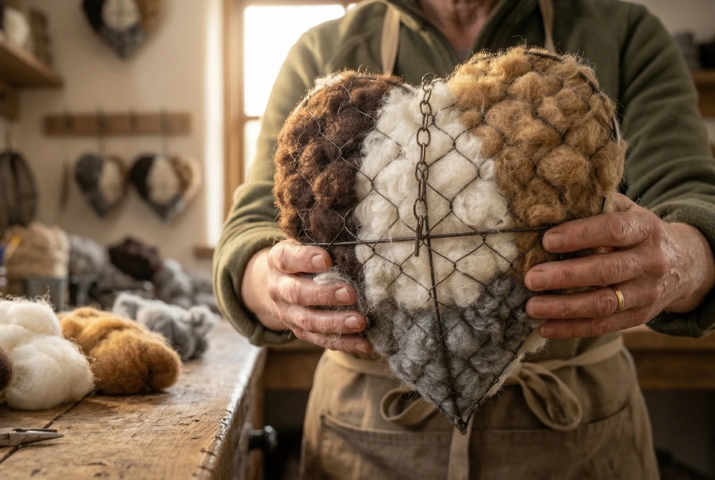 – Handgefertigte Robustheit: Jedes Herz wird von Doreen aus einem speziellen, wetterfesten Draht gebogen. Er ist so konzipiert, dass die Vögel die Wolle leicht „zupfen“ können, der Rest der Wolle aber auch bei starkem Wind sicher im Herzen bleibt.
